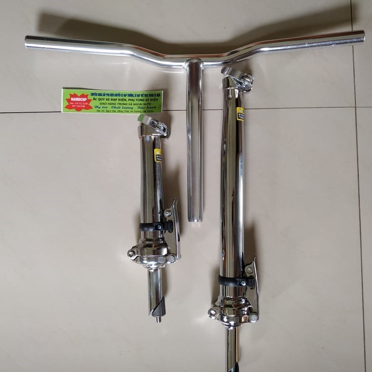 tay lái bằng nhôm, cọc lái gập và cọc yên gập bằng sắt mạ